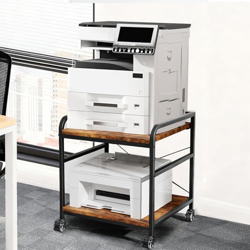 TFK 2 Tier Large Printer Stand with Storage, 20 x 20 Inch Under Desk Printer Table with Adjustable Shelf, Rolling Printers Cart for Home Office, Fits Fax /3D Printer/Scanner, Brown