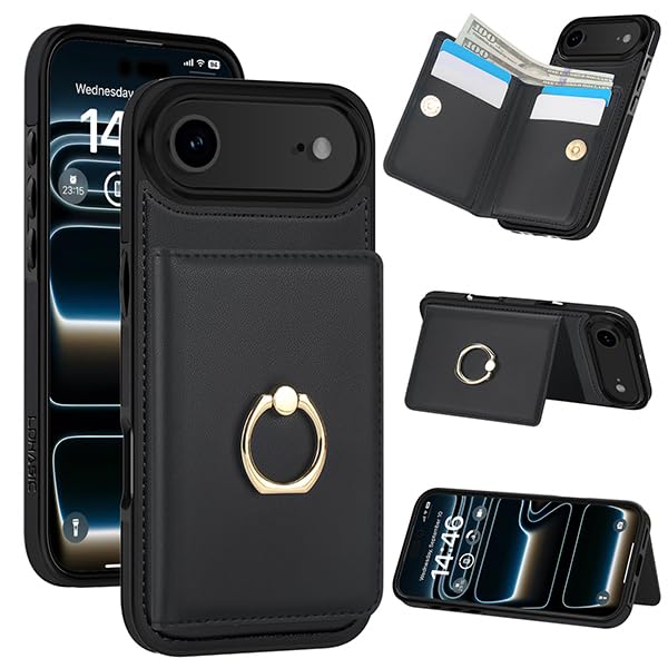 LOHASIC for iPhone 17 Air Case Wallet with Card Holder, 360° Rotation Ring, RFID Blocking, 5 Card Slots, PU Leather 6.5" Cover for Apple 17 Air Men Women, Black