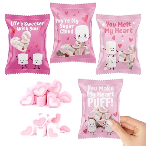 4E's Novelty Heart Marshmallows (24 Packs) Pink & White Valentine Marshmallows Mini Individually Wrapped for Hot Chocolate, Valentines Candy Bulk for Kids Classroom Exchange Party Favors