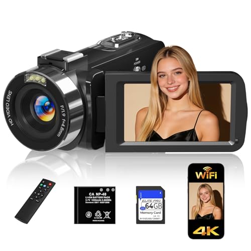 Gtonster Digital Camera,4K Video Camera Camcorder UHD 56MP WiFi Vlogging Cameras,18X Digital Zoom IR Night Vision 3.0''Touch Screen Cameras with 64GB Card,Remote Control,Webcam and Battery (Black)