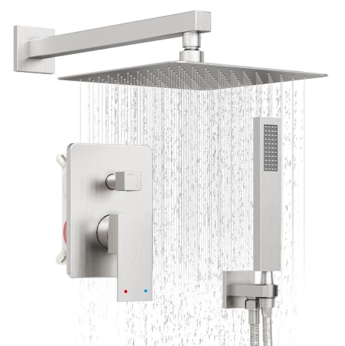 HoliSpa Shower System, Brushed Nickel Shower Faucet Set with 12-Inch Rain Showerhead and Handheld Spray, Wall Mounted High-Pressure Showerhead Combo Set Included Valve and Trim, Brushed Nickel