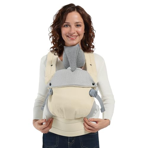 MISSWISDOM Baby Carrier Newborn to Toddler, Adjustable Toddler Carrier, Baby Holder Carrier, Kangaroo Infant Carriers with Widen Shoulder Straps, Cream