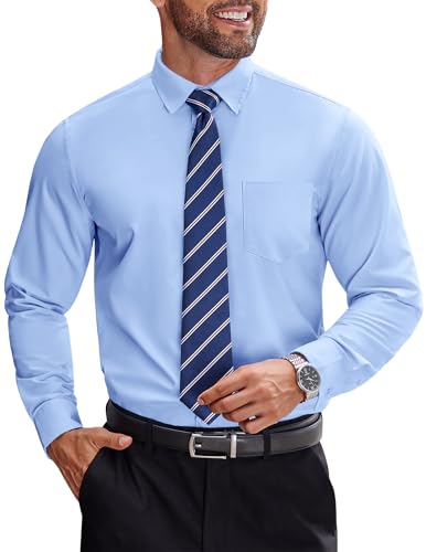 COOFANDY Men's Long Sleeve Button Down Shirt Stain Shield Regular Fit Dress Shirts for Men Brown Button Down Shirt with Pocket