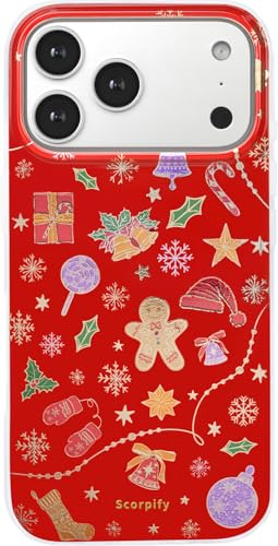 SCORPIFY for iPhone 17 Pro Max Case [Compatible with MagSafe] with Christmas Merry Magic, Cute Red Magnetic Phone Cover Bumper for Women Girls, Glitter Sparkle Gold Accents Gift & Santa Hat Design