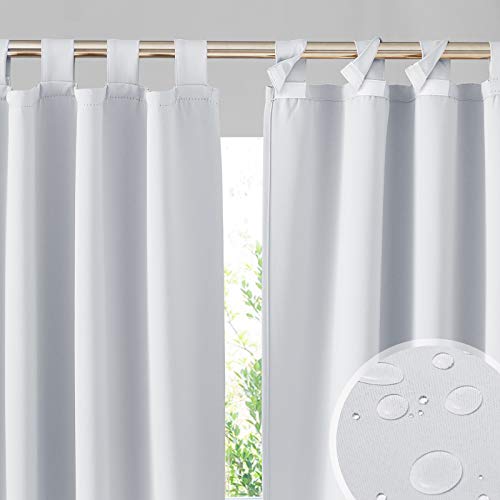 RYB HOME Porch Curtains Outdoor Waterproof - 2 Panels Detachable Top Water Resist UV Block Privacy Thermal Draperies for Patio Pergola Pavilion Spa, Wide 100, Long 84 inch, Grayish White