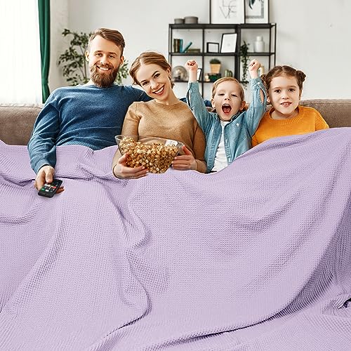 PHF Pre-Washed Cotton Waffle Weave Family Blanket,Oversized King Size 120"x 120"-Snag Proof Lightweight Breathable, 10'x 10' Huge Extra Large Big-Elegant Aesthetic Home Decoration Gift,Taro Purple