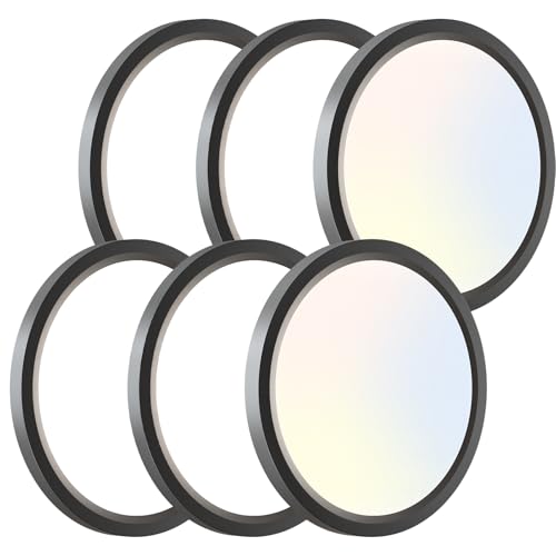 zemty 6Pack LED Ceiling Light Fixture 6.5 Inch, 12W 1200lm Ceiling Mount Light Fixtures, Adjustable 3000K 4000K 6500K, Round Flat Ceiling Lamp for Bathroom Closet Hallway Laundry (Black)