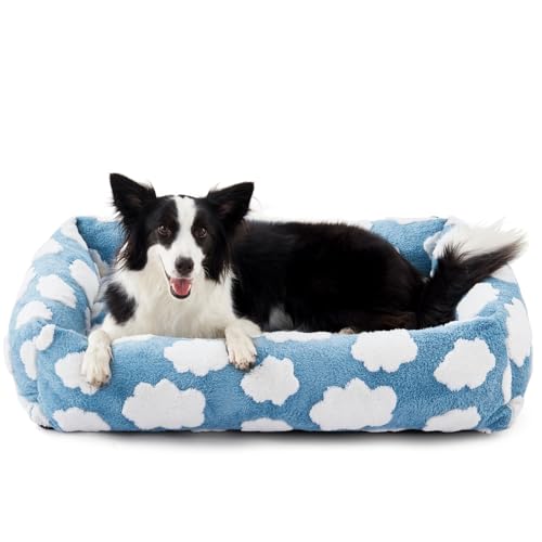 JOEJOY Cute Dog Bed Medium Size Dog, Rectangle Soft Furry Dog Beds for Large Medium Dogs, Washable Orthopedic Pet Bed with Removable Zipper Cover, Blue