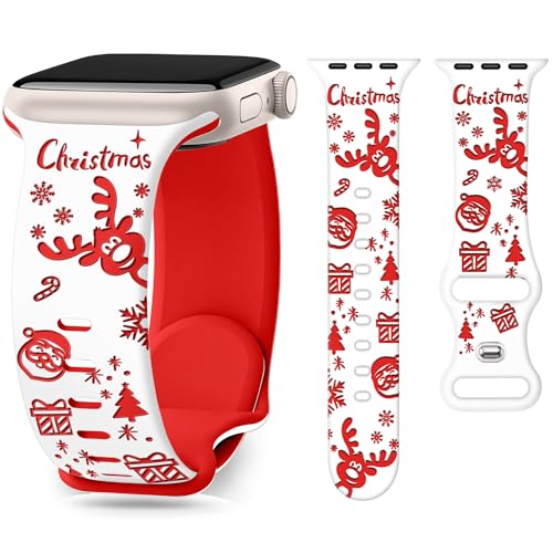 G-ficu Christmas Silicone Band for Apple Watch Bands 41mm 40mm 42mm(S11/10) 38mm iWatch Bands Series 11 10 9 8 7 SE 6 5 4 3 for Women Men, Cute Fancy Dressy Holiday Santa Claus Elk Engraved Strap-C