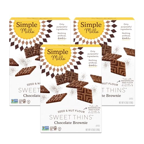 Simple Mills Sweet Thins Cookies, Seed and Nut Flour, Chocolate Brownie - Gluten Free, Paleo Friendly, Healthy Snacks, 4.25 Ounce (Pack of 3)