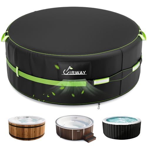 Uirway 600D Round Hot Tub Cover 79 x 28 Inch [2025 Upgraded Heavy Duty Fabric] Outdoor Waterproof Full Coverage Hot Tub Winer Covers, New Super Windproof Straps, Fits Most 6 Person Inflatable Hot Tubs