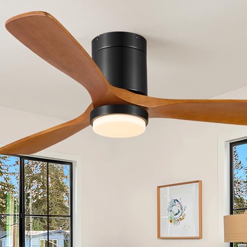 Forrovenco Ceiling Fans with Lights, 52 Inch Flush Mount Outdoor Ceiling Fan Low Profile, 3 Wood Blades, ETL Listed, Timer, 6 Speeds Reversible DC Motor Modern Fans for Patio/Bedroom/Farmhouse