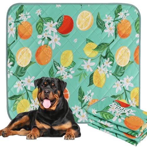 BVAGSS Washable Pee Pads for Dogs, 2 Pack Reusable Leakproof Puppy Wee Wee, Non-Slip Waterproof Pet Training, Super Absorbent Whelping XH081 (Green Lemon, 42X28 Inch)