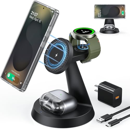 Magnetic Wireless Charger for Samsung, 3 in 1 Charging Station Compatible with MagSafe Samsung Charger for Galaxy S25 Ultra S24 Z Fold7/Flip7, Watch Charger Stand for Galaxy Watch Ultra 8 7, for Buds