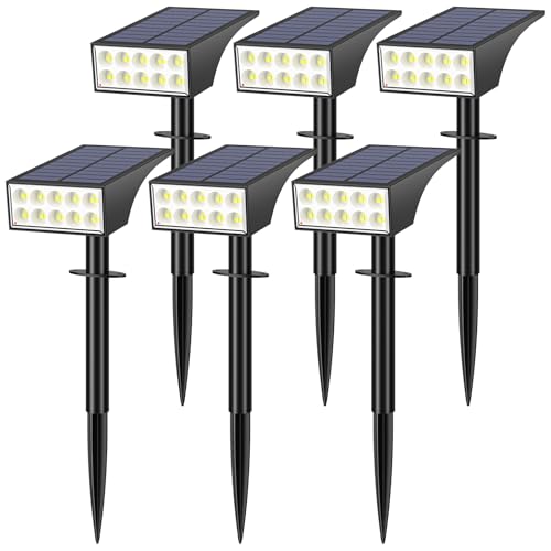 WENATY Solar Spot Lights Outdoor, Solar Lights Outdoor Waterproof IP65, 4 Brightness Modes Dusk to Dawn Landscape Spotlights for Yard Garden Pathway Porch Tree House Decoration, Cool White, 6 Pack