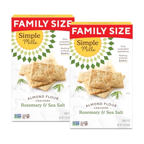 Simple Mills Almond Flour Crackers, Family Size, Rosemary & Sea Salt - Gluten Free, Vegan, Healthy Snacks, 7 Ounce (Pack of 2)