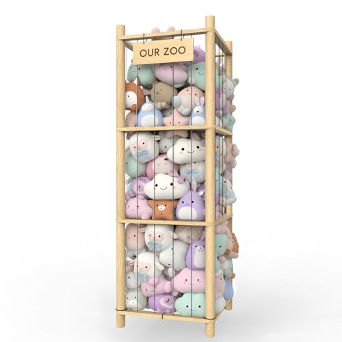 Stuffed Animal Storage & Organizer, Wooden Eco-Friendly Toy Holder with Elastic Ropes & DetachableBag, Fun Interactive Plush Toy Storage, Easy Assembly Durable Organizer for Nursery, Bedroom &Playroom