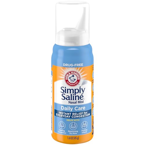 ARM & HAMMER Simply Saline Daily Care Nasal Mist, Drug-Free Non-Drowsy Saline Spray for Instant Nasal Congestion and Allergy Relief, Use as Often as Needed, Suitable to Use if Pregnant, 1.6 oz