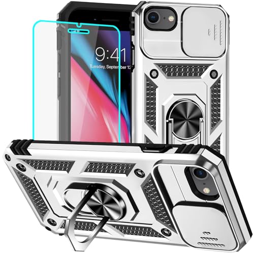 HNHYGETE for iPhone 8/7 Case, iPhone SE Case 2020/2022/3rd with Screen Protector: [Military Grade 20ft. Drop Tested] Ring Shockproof Protective Phone Case for - iPhone 8 (Silver)
