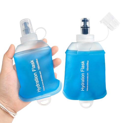 GYGYL Soft Flask, TPU Collapsible Soft Water Bottle for Hydration Pack, Running Vest, Leak-Proof Folding Water Bottle for Hiking Cycling Climbing Jogging-150ml Blue, 2pcs