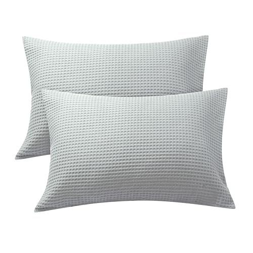 Waffle Weave Pillowcases Queen Size 2 Pack, 100% Egyptian Cotton 600 Thread Count, Ultra Soft Pillow Shams with Envelope Closure, Breathable Skin-Friendly Pillow Case, Grey, 20x30 Inches