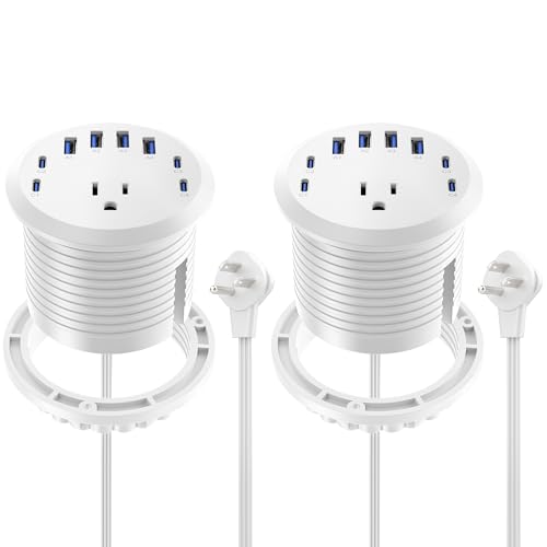 Jgstkcity 65W USB-C Hidden Desktop Power Grommet: 1 AC Outlet,8 USB Charging Ports,3'' Hole Flush Mount Pop-Up Power for Conference Tables & Nightstands (Whtie, 6 FT - 2PCS)