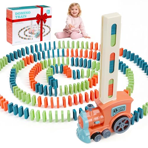 JGLXF Kids Games Domino Train Toys, 200PCS Automatic Stacking Creative Game 3+ Year Old - Stem Montessori Toy for Boys 4-6 - Christmas Birthday Gifts Pink