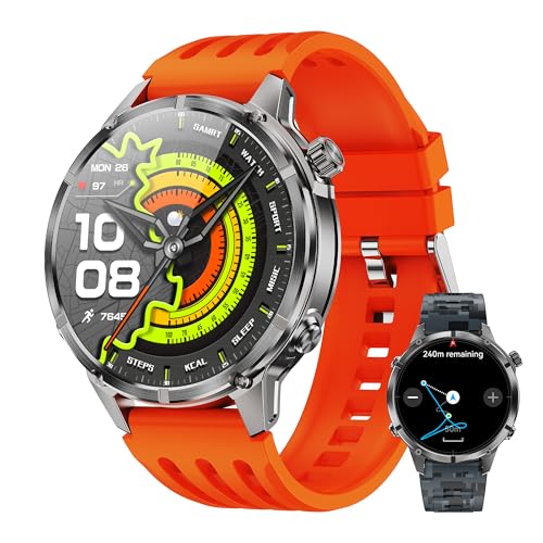 WalkerFit GPS Smart Watch for Men, Multi-Satellite Positioning, Full Metal Body, 520mAh Long Battery Life, 5ATM Waterproof with Bluetooth Call, 1.43” AMOLED Screen, Compatible with Android/iPhone
