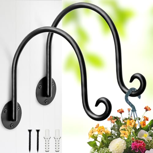 AJART Hanging Plant Hanger Outdoor: Bird Feeder Wall Hooks - 8 Inch Plant Bracket Hook for Hanging Flower Baskets 2 Pieces