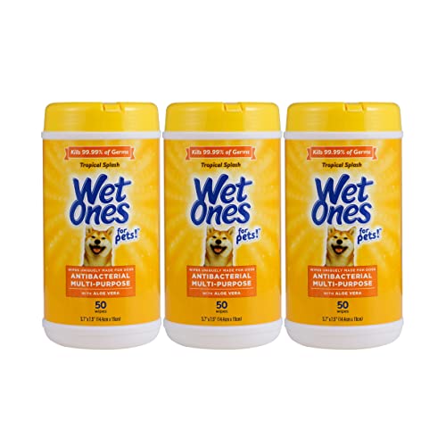 Wet Ones for Pets Multipurpose Dog Wipes with Aloe Vera, Tropical Splash Scent - Pet Bathing Wipes in Canister for Dog Paws & All Over Use, 50 Count - 3 Pack