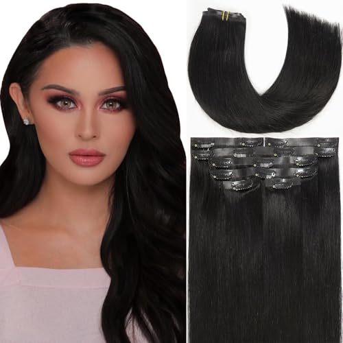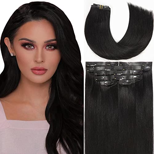Lacer Black Clip in Hair Extensions 20inch 150g Seamless Hair Extensions Human Hair Jet Black 8Pcs PU Skin Weft Natural Human Hair Clip in 19 Clips