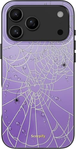 SCORPIFY for iPhone 17 Pro Max Case [Compatible with MagSafe] with Halloween Heart of Webs, Cute Purple Magnetic Phone Cover Bumper for Women Girls,Glitter Sparkle Spiderweb Design with Silver Accents