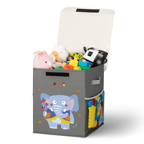 ADEHMDA 40L Large Toy Storage Box with Lid, Large Toy Box Chest for Kids, Girls and Boys, Nursery Room and Living Room, 13"x13" x16" (grey-animal)