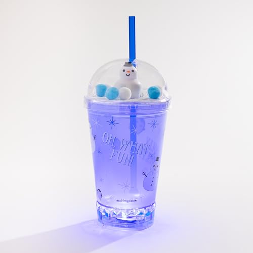 Cool Things Corp Light Up Dome Top Cup (Snowman, Party Cup for Kids & Adults) – LED Holiday Drinkware, Shaker Lid with Glitter & Pom Poms, Stocking Stuffer, Secret Santa, Christmas Party Favor