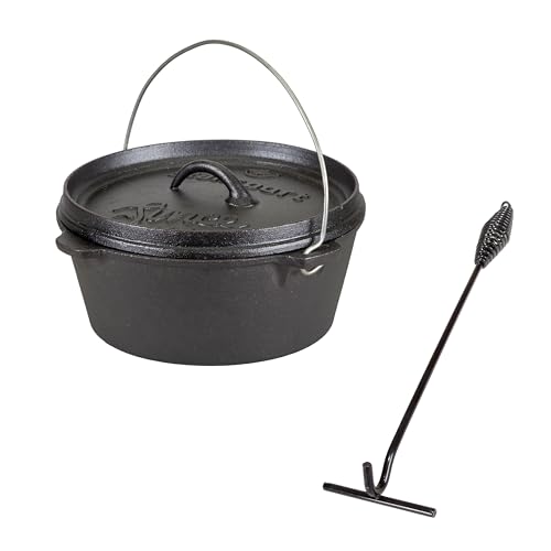 Bundle of Stansport 16023 Pre-Seasoned Cast Iron Dutch Oven - 4 Qt - Without Legs + Stansport Dutch Oven Lid Lifter (16000)