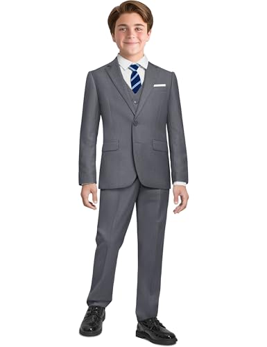 PACOROMANO Boys Suit Toddler Boy Dark Gray Husky 7 Pcs Suspenders Suit Set Boys' Formal Suits Size 6 Kids Ring Bearer Outfit Suits Dress Clothes Tuxedo for Teenage Boy