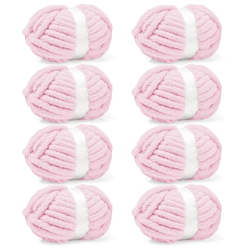 inhand 8 Pack Chunky Chenille Yarn for Crocheting– 30.6 Yards, 7.7oz, Super Bulky, Soft Fluffy Plush Yarn for Hand or Arm Knitting– Ideal for Blankets, Crafts & DIY Projects (Light Pink)