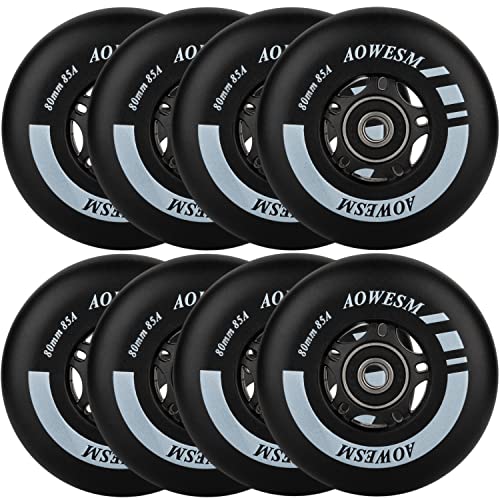 AOWESM Inline Skate Wheels 80mm 76mm 72mm 85a Outdoor Indoor Black Blue Red Roller Hockey Blades Replacement Wheels w/Bearings ABEC-9 and Floating Spacers (8-Pack) (Black, 72mm)