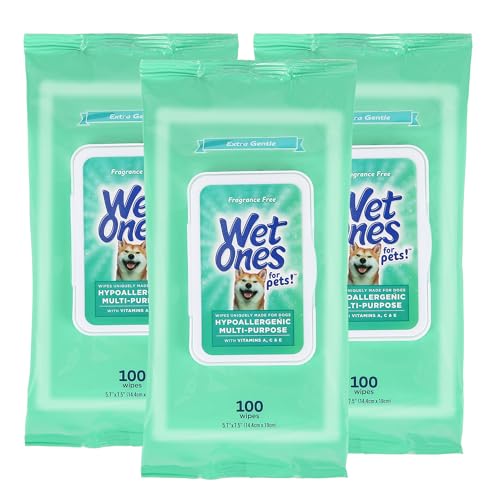 Wet Ones Multi Purpose Pets Wipes, 300 Count, Fragrance Free, Dog Wipes with Vitamins A C and E, Wet Lock Seal