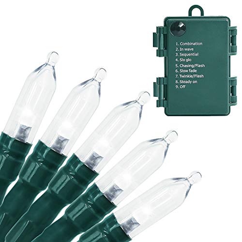 LOENDE Christmas Lights Battery Operated String Lights 50-Count 8 Modes Clear Green Wire LED Mini Light Set with Timer for Christmas Tree Wreath Party Home Indoor Outdoor Decor Waterproof, White
