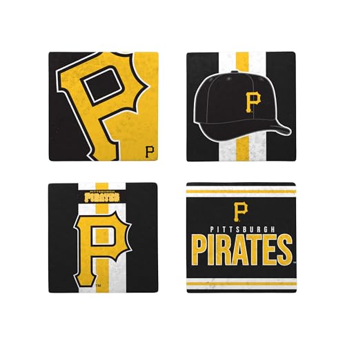 FOCO MLB Official 4-Pack Beverage Drink Ceramic Stone Coaster Set (Pittsburgh Pirates)