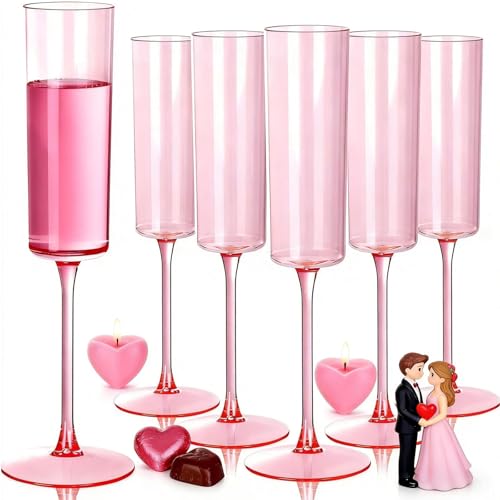 Ciaell 24 Pack Pink Plastic Champagne Flutes - Pink 6 Oz Disposable Champagne Glasses - Square Plastic Toasting Glasses for Party Birthday Anniversary Wedding & Valentine's Day