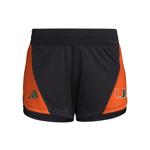 Adidas Women's D4T Woven University of Miami Training Shorts, Black/Collegiate Orange/Dark Green/University of Miami, XX-Large/3" Inseam