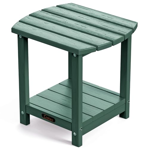 Ciokea Adirondack Outdoor Side Table, 2-Tier Sturdy Patio End Table Weather Resistant, Morden Side Table for Patio, Pool, Porch, Green