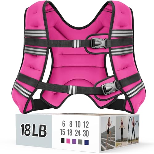 Zeerun Weighted Vest for Women & Men with Reflective Stripe and Adjustable Buckle, Comfortable & Durable Rucking Vest for Walking, Running & Strength Training, 18LBS-Pink