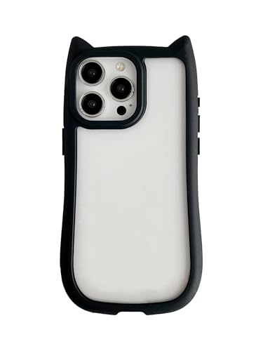 CASEZIN Designed for iPhone Case with 3D Cute Cat Ear,Fashion Transparent Shockproof Full Body Protection Clear Phone Cover Case for Girls Women (Black,iPhone 15 Pro Max)
