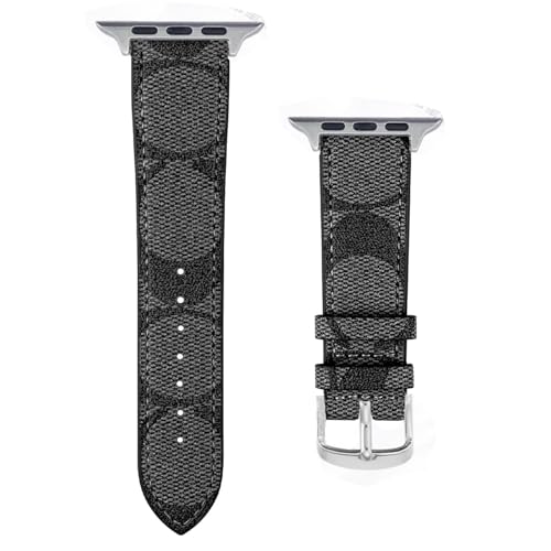 NYENEIL Compatible with Apple Watch Ultra Band 38mm 40mm 41mm 42mm 44mm 45mm 46mm 49mm Series 10/9/8/7/6/5/4/3/2/1iwatch bands,Luxury Monogram Retro Soft Strap Replacement Sport band for Women Men (Black Silver, 46/49/45/44/42mm(Series 1/2/3))
