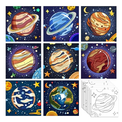 Zynlio 8 Packs 8 * 8in Planet Pre Drawn Canvas to Paint,Space Pre Printed Canvas for Adults, Painting Boards for Beginners, Party Favors (Planet)