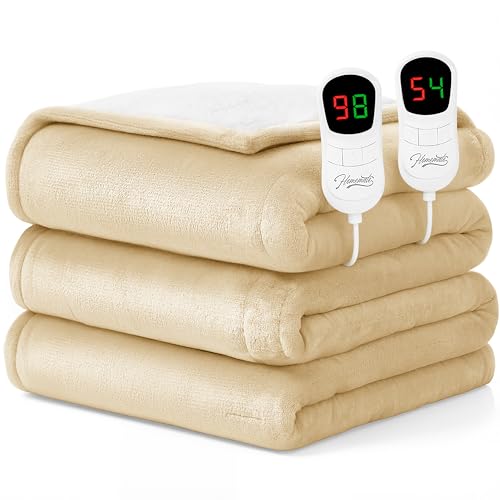 Homemate Electric Heated Blanket King Size - 100"x90" Heating Blanket King Size Dual Control 1/2/4/6/8 Hours Auto-Off 10 Heat Level Over-Heat Protection Flannel Sherpa ETL Certification