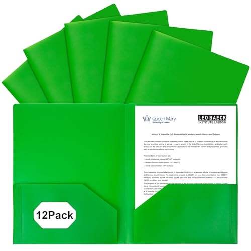 EEHZTSI 12-Pack Plastic Folders with Pockets,2-Pocket Poly Folders Holds 8-1/2" x 11" Paper for School/Office/Home, Green